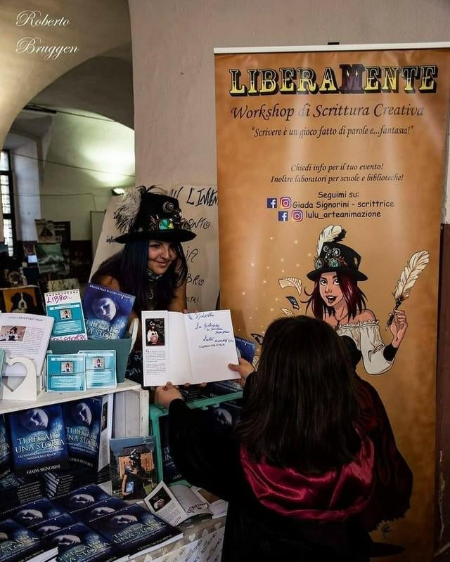 Potremmo parlare per ore con Lulu’ l’Inventastorie alias Giada, dentro di lei vive un mondo fantastico, una fucina di idee che non si fermano mai ma hanno un’ unica meta, riuscire a portare la fantasia nelle scuole, ai bambini cosi’ come agli adulti.