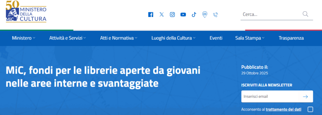Il Ministero della Cultura ha pubblicato il Comunicato Ufficiale del DM 383/2025, che stanzia 4 milioni di euro per favorire l’apertura di nuove librerie gestite da giovani under 35.