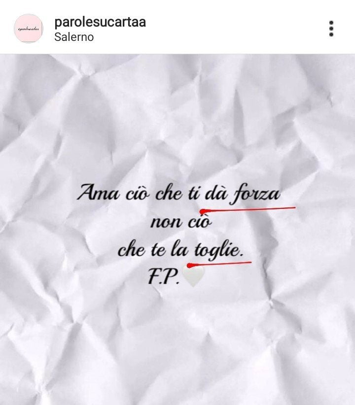 Qualche mese fa ho deciso di aprire il profilo Instagram parolesucartaa che ad oggi conta circa 2280 followers con lo scopo di far arrivare ciò che scrivo alle persone e di condividere emozioni. A dire la verità non pensavo di poter arrivare a questo grande risultato.Significa che ho raggiunto quello che era e che continuerà ad essere il mio obiettivo.